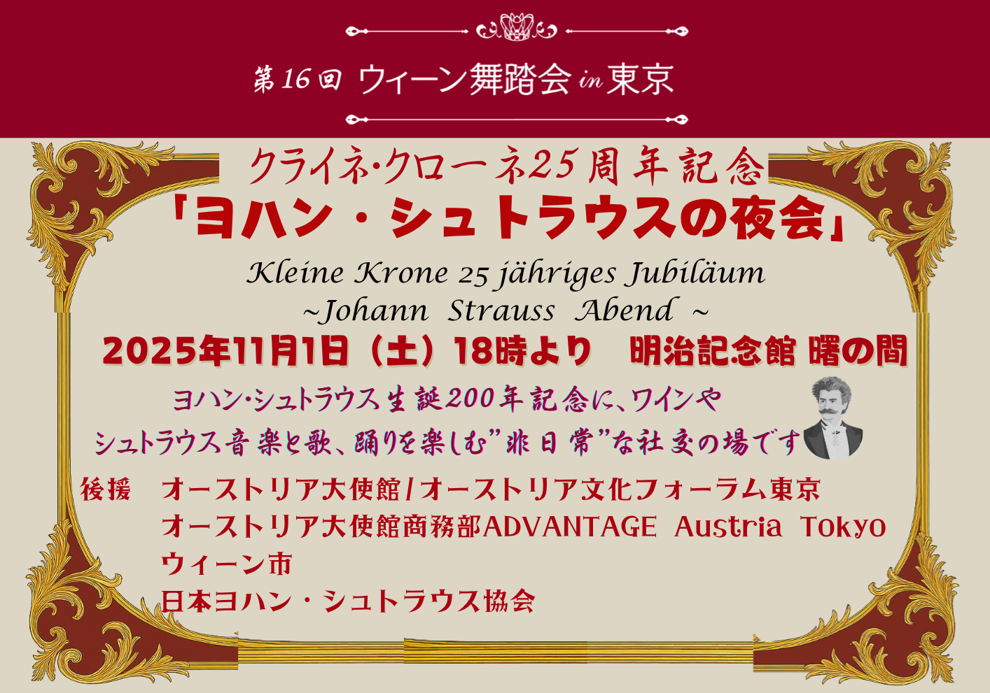 オーストリア、ウィーンの文化をや歴史、伝統に触れ、社交を楽しむ… そんな、非日常にご案内いたします 舞踏会に参加したいという夢も、かなえることができます 舞踏会参加歴30年のクローネマキコが、”ウィーン舞踏会in東京“もプロデュースしています