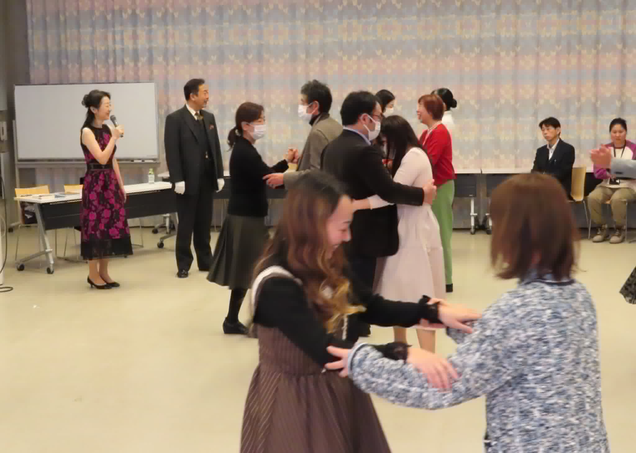 「ウィーンの舞踏会」についてのセミナー、続いて実際に舞踏会のマナーやダンス体験、であっという間の1時間半となり、終了後のアンケートにも良いコメントを頂いたとのことです。